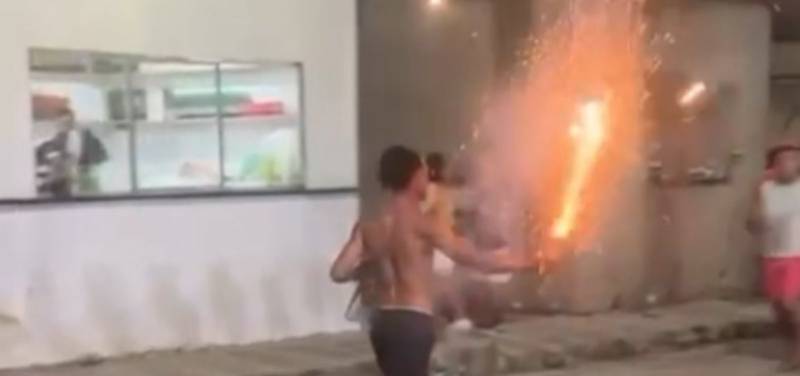 Por RafaAcidente ocorreu durante guerra de espadas no bairro Copian; vítima foi transferida para unidade especializada em queimados