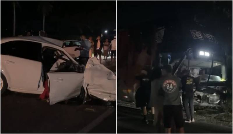 Por RafaA colisão envolveu um carro de passeio e o ônibus da banda do cantor Netto Brito.