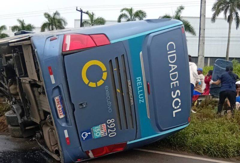 Ônibus tomba na BR-324 em Feira de Santana