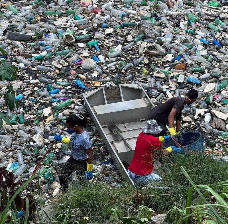 Por RafaEntre os materiais encontrados estavam garrafas de plástico, isopor e outros resíduos descartados de forma irregular