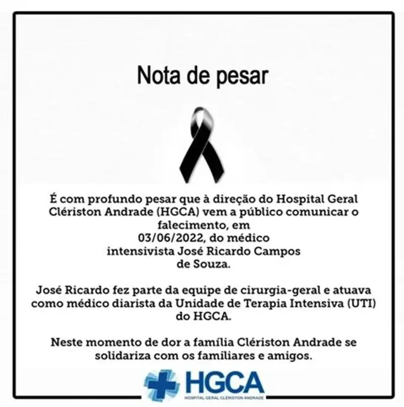 Morre aos 43 anos, médico José Ricardo Campos, intensivista do HGCA