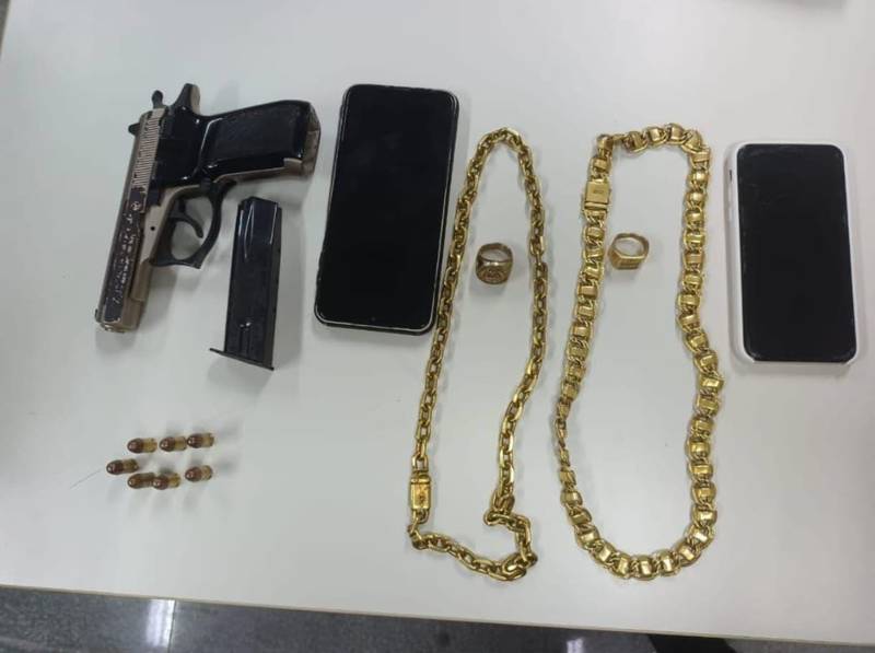 Diante dos fatos, os dois homens, a arma de fogo e os demais objetos foram apresentados à Central de Flagrantes para adoção das medidas cabíveis.