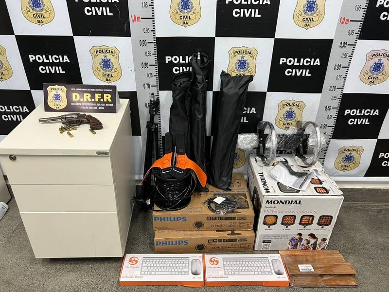 Por Thaciane MendesA polícia apreendeu uma arma de fogo e mercadorias roubadas