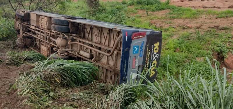 Por Thaciane MendesO condutor do veículo tentou desviar de uma carreta que estava parada na pista, não conseguiu e acabou derrubando o coletivo em uma ribanceira